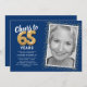 Feiern Sie Ihren besonderen 65. Meilenstein stilvoll mit unseren maßgeschneiderten Einladungen. Diese sind mit einem individuell anpassbaren blauen Hintergrund gestaltet, der zu Ihrem gewählten Farbton wechselt und das Wesen des Fotos mit einer besonderen Platzierung einfangen lässt. Ein Imitat vergoldeter Glitzer und Helium-Ballons sorgen für eine elegante Touch, während Sie mit der modernen Textvorlage Ihren eigenen Flair hinzufügen können. Machen Sie Ihre 65. Geburtstagsfeier mit unseren einzigartigen Einladungen unvergesslich.