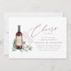 Planen Sie ein Weinthema oder eine Weinprobe oder veranstalten Sie die große Veranstaltung in einem Weingut oder Weinberg? Freuen Sie sich auf unsere eleganten Einladungen zu einer Weinprobe mit einer Flasche Bordeaux-Rotwein und zwei Weingläsern, die mit grünen Aquarellfarben-Eukalyptus-Blätter und Blattwerk geschmückt sind. In der Schriftzeichen-Schrift erscheint "Liebe bejubeln". Für eine abschließende Touch personalisieren Sie das Weinflaschenlabel mit den Initialen des Paares. Ideal für Verlobungen in Weinland, Weinkeller oder Weinbergen.
