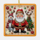 Ein festliches Design mit Schneemann, Weihnachtsmann, Reh und einem dekorierten Weihnachtsbaum, Set vor einem goldenen, gepunkteten blumigen Hintergrund, das Wärme und Urlaubsmagie hervorruft. "Das Originalbild wurde von Meta AI erstellt. AI generierte Kunstwerke. Lizenziert unter CC BY-SA 4.0."