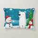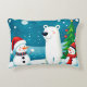 Feiernder Schneemann und Eisbär feiern Winter Dekokissen