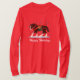 Illustriertes Clydesdale mit Klingelglocken und einem Sack voll Teddybären mit Schneeflocken im Hintergrund. Sagt frohe Feiertage. Rückseite hat 3 kleine Versionen an der Rückseite der Schultern.