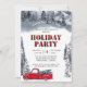Feiern Sie die Saison mit einer lustigen Urlaubsparty! Einladung mit herrlicher Wasserfarbengebirge Waldlandschaft und Vintagem rotem LKW. Buffalo karierte schwarz und rot und schwarz karierte Details auf der Vorderseite. Rückseite der Karte mit Bergen, LKW und Füchsen in der Schneeszenerie — Für Textanpassungen können Sie uns per E-Mail an one2inspiredesigns@gmail.com, alle weiteren Versand- oder "Produkt"-Fragen kontaktieren Sie bitte zazzles Kundenservice.
