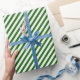 Geschenkpapier mit grün-weiß gestreiftem Druck wird gezeigt.