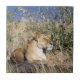 Eine Löwe, die im Schatten einiger kleiner Büsche ruht. Das Bild wurde auf einer Safari in Kenia aufgenommen, Masai Mara Game Reserve. © Angelika Stern