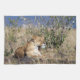Eine Löwe, die im Schatten einiger kleiner Büsche ruht. Das Bild wurde auf einer Safari in Kenia aufgenommen, Masai Mara Game Reserve. © Angelika Stern