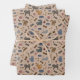 Dieses skurrile Design zeigt Cartoon-Katzen in verschiedenen Posen, umgeben von Pfotenabzügen, Garnbällen, Fischknochen, Katzenspielzeug, Lebensmittelschalen und Knochen auf hellbraunem Hintergrund. Ideal für Kinder, bietet dieses Packpapier jedem Geschenk einen lustigen, mit einem Thema versehenen Charme.