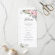 Dieses wunderschöne Hochzeitsempfang-Programm besticht durch einen trendigen Blumenstrauß in Aquarelltönen mit staubigen Rose und Blume in den Farbtönen Pfirsich, Rosa, Blau und Grün.