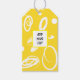 Dieses elegante, ausdrucksvolle und lustige Geschenketikett zeigt ein Set von kurvigen und konzentrierten weißen Linien und flachen Bereichen auf gelb-orangefarbenen Oberflächen. Die Vorderseite hat ein bearbeitbares Quadrat in der Mitte, sodass Sie Ihren eigenen Text oder Logo hinzufügen können.