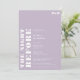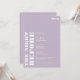 Fett schlicht weiß auf pastellfarbenen lila Lavendel Hochzeit Probe Abendessen mit der Nacht vor in übergroßen fett Schriftart geschrieben. Perfekte Hochzeitsidee für Proben.