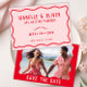 Mit unserem kühlen, hellrosa Rot-Squiggle Wavy Retro-Foto Save the Date, können Sie Ihren Hochzeitstag mit einem modernen und trendigen Flair verkünden. Diese Save the Date-Karte verbindet fett gedruckte Typografie, lebhafte Farben und ein spielerisches Retro-Design, um eine einzigartige und auffällige Ästhetik zu schaffen. Die auffallende Kombination aus hellen Rosa- und Rottönen verleiht Ihrem Save the Date einen ganz besonderen Flair. Diese Farbtöne symbolisieren Liebe, Leidenschaft und Feiern und geben den perfekten Rahmen für Ihre Hochzeit. Die mutige Typografie fügt eine zeitgenössische Touch hinzu, um zu gewährleisten, dass Ihr wichtiger Termin stilvoll ist. Das im Retro inspiriert Squiggle Wavy Design bringt Ihnen Save the Date ein Gefühl von Launen und Nostalgie. Die spielerischen Kurven und Drehungen fügen ein einzigartiges und unvergessliches Element hinzu, das Ihre Karte von der Erholung abhebt. Mix und passen Sie dieses Design mit anderen Elementen zusammen, um ein personalisiertes und einheitliches Aussehen zu schaffen, das Ihren Stil widerspiegelt. Eines der herausragenden Merkmale unseres kühl leuchtend rosa rosa Squiggle Wavy Retro Fotos Save the Date ist die Option, ein Foto einzubinden. So können Sie Ihre Liebe präsentieren und einen besonderen Augenblick einnehmen, während Sie Ihre Lieben zu Ihrer Hochzeit Save the Date einladen. Es verleiht Ihrer Touch eine persönliche Note und schafft einen bleibenden Eindruck bei Ihren Gästen. Machen Sie eine Aussage mit Ihrer speichern Sie die Datumskarten und Set den Ton für eine unvergessliche Hochzeitsfeier. Bestellen Sie noch heute unser kühl hellrosa Rot Squiggle Wavy Retro Foto Save the Date und lass Ihren Gästen, dass Ihre Hochzeit eine einmalige Veranstaltung mit Liebe und Freude sein wird.