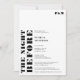 Kühne Schwarz-weiße Hochzeit Probe Abendessen mit der Nacht vor in übergroßen kühnen Schriftart geschrieben. Perfekte Hochzeitsidee für Proben.