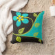 Kühne türkisfarbene Blume maßgeschneidert dekorativ amerikanischen Mojo werfen/werfen Kissen. Ein imposantes Akzent Kissen-Design mit einer kühnen türkisblauen Blume mit grünen Blätter auf schwarzem und türkisfarbenem Hintergrund mit Damast-Mustern. Klicken Sie auf Anpassen und wählen Sie aus über 200 Farben, um die Farbe (Türkis) zu ändern.