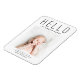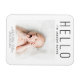 Einfach und kühn Foto-Magnet mit großem Schriftart an der Spitze, der "HELLO" nach dem Namen und der Geburtsstatistik des Neugeborenen sagt. Eine tolle Möglichkeit, eine neue Ergänzung zu Ihrer Familie anzukündigen.