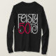 Handgezeichnet Digitaltext-Design: "Feisty at 50ty" vor dunklem Hintergrund. 50? Oder kennen Sie ein Familienmitglied oder einen Freund, der ist? Hier ist das perfekte Geschenk, um ihnen einen fabelhaften, fröhlichen 50. Geburtstag zu wünschen. Oder eine exzellente Einladung zu einer Feier und als Party präsentiert! Schöne passende Karte, Aufkleber.