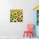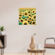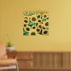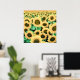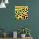 Drucken Sie in einem Feld mit goldgelben Sonnenblumen mit schokoladenbraunen Zentren und grünen Blätter