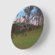 Feld der Rotwild u. des rosa Sonnenuntergangs Runde Wanduhr