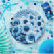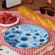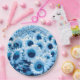 Teller in einem Digitaldruck auf der Grundlage eines Fotos von Sonnenblumen - Blautöne von tief indigo bis blass himmelblau, mit weißem Akzent