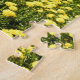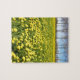 Feld des gelben Löwenzahns im Gras mit Baumlinie Puzzle