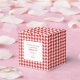Einfaches und dennoch elegantes Hahnentrittmuster Fevor Boxen mit einem trendigen, rot-weißen Hahnentrittmuster-Hintergrund. Einfach an Ihre Hochzeitsdetails anpassen. Klicken Sie für weitere Anpassungsoptionen auf die Schaltfläche Anpassen.