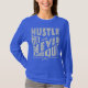 Field Hockey T - Shirt, in verschiedenen Stilen erhältlich, für Damen, Herren und Kinder! Text liest: Hustle, Hit und Niemals beenden, mit einem gekreuzten Feld Hockey-Sticks Icon.