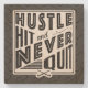 Field Hockey Hustle, Hit & Niemals Stone Untersetzer verlassen. Text liest: Hustle, Hit und Niemals beenden, mit einem gekreuzten Feld Hockey-Sticks Icon.