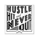 Text liest: Hustle, Hit und Niemals beenden, mit einem gekreuzten Feld Hockey-Sticks Icon.