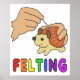 Felting Design zeigt ein Paar von Felten, die einen Filz-Igel mit dem Wort "Felting" unten in Regenbogenfarben herstellen. Ein lustiges Filzdesign für Liebhaber!