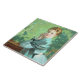 Dieses Design zeigt ein Gemälde des schottischen Künstlers George Henry (1858-1943), der eines der prominentesten Mitglieder der Glasgow School of Art war. Es ist ein Portrait einer schönen jungen Frau namens Felicity. Sie sitzt an einem Tisch und trägt ein türkisblau-blaues Kleid. Ihre Ellbogen ruhen auf dem Tisch und halten ihre Hände neben ihrem Gesicht fest. Die Felicity beginnt intensiv beim Betrachter. Sie ist eindeutig eine elegante Frau. Ihr kastanienbraunes Haar ist modern gestylt und trägt einen Schal über ihrem Kleid, das ein etwas dunklerer türkisfarbener ist als das Kleid selbst. Im Hintergrund ist die Vegetation, was darauf hindeutet, dass sie draußen in einem Garten sitzt. Das Originalwerk wurde 1916 von George Henry gemalt.