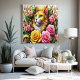Eine faszinierende Darstellung einer stilisierten Katze liegt umgeben von einer üppigen, farbenfrohen Vielfalt an Blume und verzierten Dekorationen. Die Augen der Katzen sind ruhig und aufmerksam, wobei sie sich in der Pracht der umliegenden Blütenblätter niederlassen. Eine harmonische Mischung aus goldfarbenen und schmuckfarbenen Tropfen verleiht der faszinierenden Szene eine Touch von Launen, die einen Augenblick in einem zauberhaften Garten verspricht. 1. Treten Sie ein in eine Welt der Zauberei mit diesem exquisiten Kunstwerk, das eine lebendige und skurrile Darstellung einer farbenprächtigen Katze zeigt, eingebettet in ein Bett von Rose. Die stilisierte Katze strahlt Eleganz und Anmut aus, mit ihren ruhigen Augen, die auf den Betrachter schauen und sie einladen, sich in den faszinierenden Details der Szene zu verirren. 2. Um die Katze herum sind üppige, blühende Rose in einer Vielzahl von Farbtönen, die einen atemberaubenden Kontrast zum farbenfrohen Fell der Katze schaffen. Die verzierten Dekorationen und die aufwändigen Motive verstärken das magische Ambiente des Kunstwerks und bringen den Betrachter in einen fantastischen Garten, in dem die Zeit still steht. 3. Die harmonische Mischung aus goldenen Akzenten und juwelenfarbenen Tropfen verleiht der Gesamtkomposition eine Touch von Luxus und Eleganz, die das Stück zu einem echten Kunstwerk macht. Dieses faszinierende Bild wird in jedem Raum zu einem Mittelpunkt werden und ein Gefühl von Staunen und Schönheit in seine Umgebung bringen. Dieses Meisterwerk wird auf einer eingewickelten Leinwand gezeigt und ist bereit, Ihre Wände zu schmücken und alle, die es sehen, zu faszinieren.