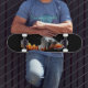 "Feline Elegance" Skateboard Deck Dieses faszinierende Skateboard Deck-Design zeichnet sich durch das Seitenprofil einer majestätischen Katze aus, die in atemberaubendem Detail auf einem schwarzen Hintergrund dargestellt wird. Der Blick des Katzen ist stetig und gedankenvoll, mit seinem Fell, das von sanften, warmen Lichtgradienten erhellt wird. Was dieses Design wirklich auszeichnet, ist die fließende, goldorangefarbene Struktur, die den Hals der Katze schmückt, die an künstlerische Draperie oder einen Regalkragen erinnert. Die subtilen Punkte, die im Hintergrund verstreut sind, verleihen dem Raum eine himmlische oder verträumte Qualität, die seine Raffinesse erhöht. Dieses Kunstwerk, das mithilfe von KI entworfen wurde, verbindet Kreativität und Technologie nahtlos und liefert ein einzigartiges Stück, das perfekt für Kunstliebhaber und Skateboarder ist. Dieses Deck ist ideal für Ausstellungen oder den täglichen Gebrauch und strahlt Eleganz, Neugier und kühne Kunst aus.