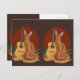 Send warm greetings with a serene illustration of a reddish-brown Abyssinian cat, an acoustic guitar, and autumn leaves, framed by a soft terracotta sun. Perfect for seasonal notes or artistic messages.