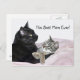 Tabby Kätzchen schlich sich mit einer Postkarte aus schwarzem Foto ein, die "Die beste Mama je!" verkündet. Text kann mit der Schaltfläche CUSTOMIZE geändert oder entfernt werden.