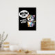 Diese bezaubernde Grafik zeigt eine glückliche Cartoon-Katze mit einzigartigen farbgeblockten Fellen in Blau, Orange, Gelb und lila Tönen, die eine festliche polka-gepunktete Bugs-Krawatte und eine winzige Glocke zeigt. Eine Sprechblase neben den Staaten "MEOW IST MEIN LIEBLINGSWORT", mit der Erholung des Textes "LIEBLINGSWORT", wird unten mutig angezeigt. Das Design ist Set auf einem soliden schwarzen Hintergrund. Digitaler Download nur für den persönlichen Gebrauch.
