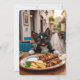 Es geht um die Geschmäcke von Griechenland für Felini! Unser Abenteurer in Tuxedo nimmt sich einen Augenblick Zeit, um sich in einem köstlichen Souvlaki zu verwöhnen und beweist, dass er nicht nur ein Weltreisender, sondern auch ein Feinschmecker im Herzen ist. Felinis ausdrucksvolle Augen sagen alles: "Ist das das beste Essen meines Lebens? Wahrscheinlich!" Mit seinen zauberhaften weißen Markierungen und den reichen Blau-Weiß-Tönen Griechenlands im Hintergrund ist dieses Bild ein Fest für Augen und Herz. Ideal für die Liebhaber von Speisen, für die Griechen und für alle, die eine Touch Spaß mit ihrer Wanderlust schätzen. Feiern Sie die Freude an Reisen, gutes Essen und felinen Charme mit dieser reizvollen Szene Felinis, der sein bestes Leben in Athen lebt!