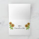 Die Vorderseite der Karte hat einen schönen Korb mit Sonnenblumen und sagt: "Glückliche Geburtstagstochter auf Spanisch (Name hinzufügen)." Sie können den Text bearbeiten, um zu sagen, was Sie wollen. Das Innere hat zwei weitere Bilder von Sonnenblumen und die Worte: "Einen schönen Tag wünschen." Die Rückseite hat ein weiteres hübsches Bild von Sonnenblumen auf einem Heuballen.