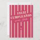 Eine atemberaubend-minimalistisch-rosa spanische Geburtstagskarte mit beigen Streifen und Kerze. Diese Karte kann mit dem Namen des Geburtstags personalisiert werden.