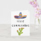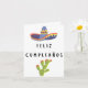 Spanische Geburtstagskarte (tarjeta de cumpleaños) mit Geburtstagsbotschaft auf Spanisch (Feliz Cumpleaños, Geburtstag auf Spanisch) und traditionell mexikanisch anmutende Illustration von Sombrero und Kakteen. Beinhaltet die Geburtstagsnachricht in der Karte 'Feliz Cumpleaños'.