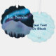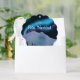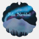 An einer kalten Nacht in Alaska leuchten lila und blaue Nordlichter über schneebedeckte Berge. Spanischer Text, "Feliz Navidad" erscheint in blau-weiß. Fügen Sie auf der Rückseite Ihren eigenen zusätzlichen Text hinzu.