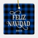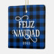 Feliz Navidad Blue Buffalo Plaid Family Photo Keramikornament
