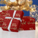 Feliz Navidad Spanisch Frohe Weihnachtsbriefe Typografie, festes Rot und Gold, Imitate Gold Foil Text auf rotem Hintergrund, Moderne Schrift, Chic Weihnachtsgeschenkpapier