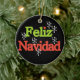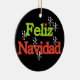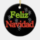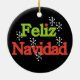 Schneeflocken und roter und grüner Urlaubstext, der "Feliz Navidad" auf Sake-Ornamenten lautet, können Sie die Form vor der Bestellung ändern.