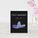 Spanische Weihnachtskarte (tarjeta de Navidad) mit Weihnachtsbotschaft auf Spanisch (Feliz Navidad, fröhliche Weihnachten auf Spanisch) und lustige mexikanische Themen sombrero hat Weihnachtsbild. Beinhaltet die Weihnachtsbotschaft in der Karte 'Feliz Navidad'.
