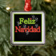 Das Holiday Keepake-Ornament liest "Feliz Navidad" in grünem und rotem Text.