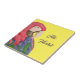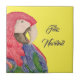 Feliz Navidad Makaw Keramik Kachel mit einem roten Papagei auf einem gelben Hintergrund. Blaue Schriften können mit Ihrer eigenen Nachricht angepasst werden. Ideal, um ein frohes Weihnachtsfest mit einem Thema aus Mexiko zu wünschen.