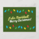 Eine Feliz Navidad Postkarte mit farbenfrohen Lichtern. Card sagt auch frohe Weihnachten auf Englisch. Einfach und festlich. Es sticht in der Post hervor. Die Karte ist anpassbar. Ideal für Unternehmen.