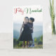 Elegantes Feliz Navidad Foto gefaltete Karte mit wunderschöner kursiver Typografie in rot und grün. Dieses moderne Familienfoto der spanischen Weihnachtskarten enthält ein prächtiges Drehbuch und Ihren Namen in Weiß über dem ganzen vertikalen Bild.