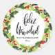 Feliz Navidad Script Red Berry Holiday Wreath Runder Aufkleber