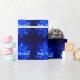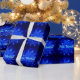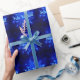 Ein Schwarm blauen Fraktals Schneeflocken. Der Text "Feliz Navidad" erscheint in blau-weiß.