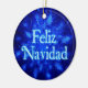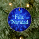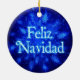 Ein Schwarm blauen Fraktals Schneeflocken. Der spanische Text "Feliz Navidad" erscheint in blau-weiß.