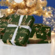 Feliz Navidad Stars Green Gold Script Geschenkpapier
